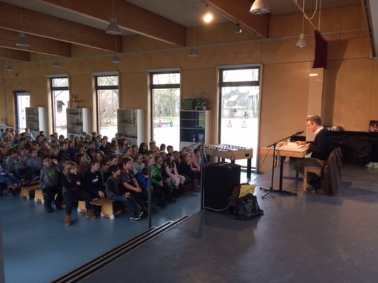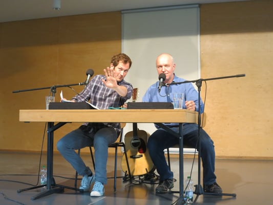 Im Rahmen unserer "Projektwoche Bayern" besuchten uns auch die zwei bekannten bayerischen Schauspieler Heinz-Josef Braun und Stefan Murr und boten uns eine mitreißende Aufführung der "Bayerischen Bremer Stadtmusikanten". Sie schlüpften dabei in alle Rollen: Vom alten Esel über zwei geschwätzige Wanderratten bis hin zur bösen Müllerin, vom zahnlosen Hund, der verwöhnten Katze und dem italienischen Hahn Eros Gockelotti bis hin zu den Räubern Knurrhax, Ibidumm und Schepperdeppi.