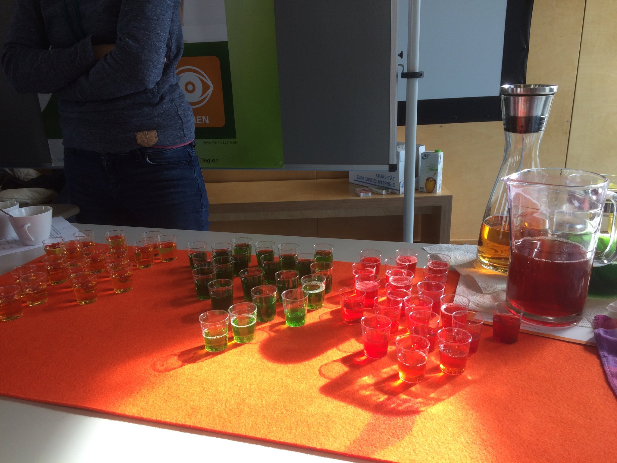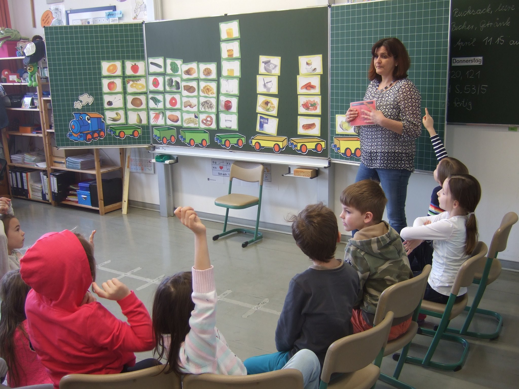 Die hellen, freundlichen Farben sind auf die Wandfarbe der Schule abgestimmt.