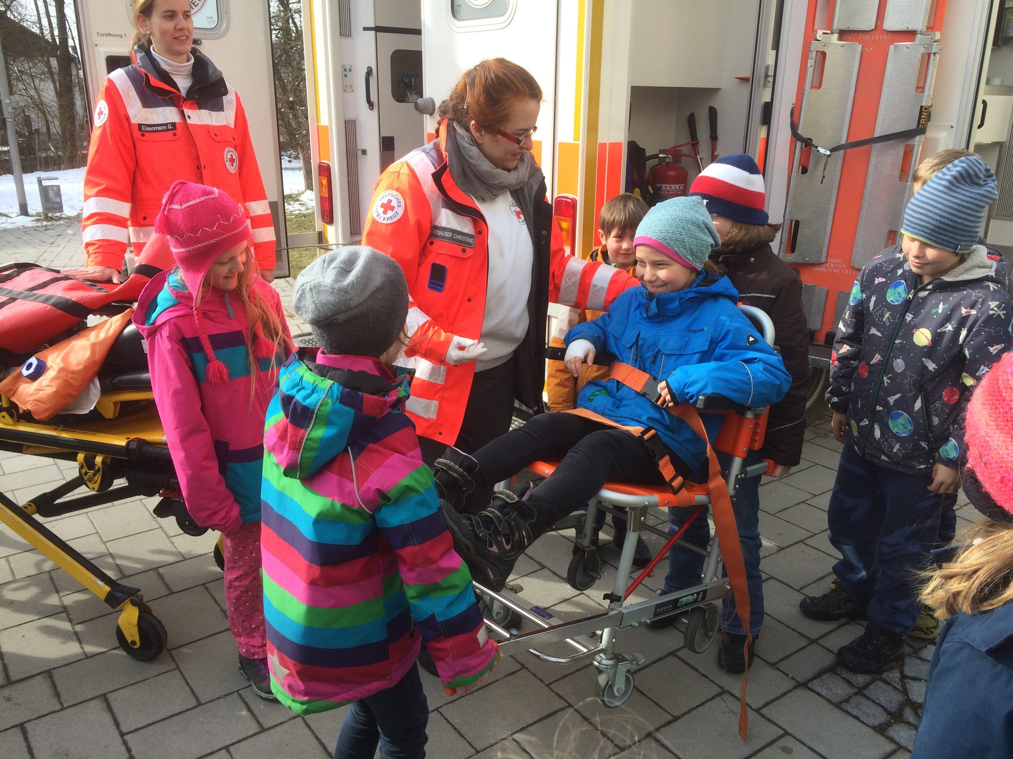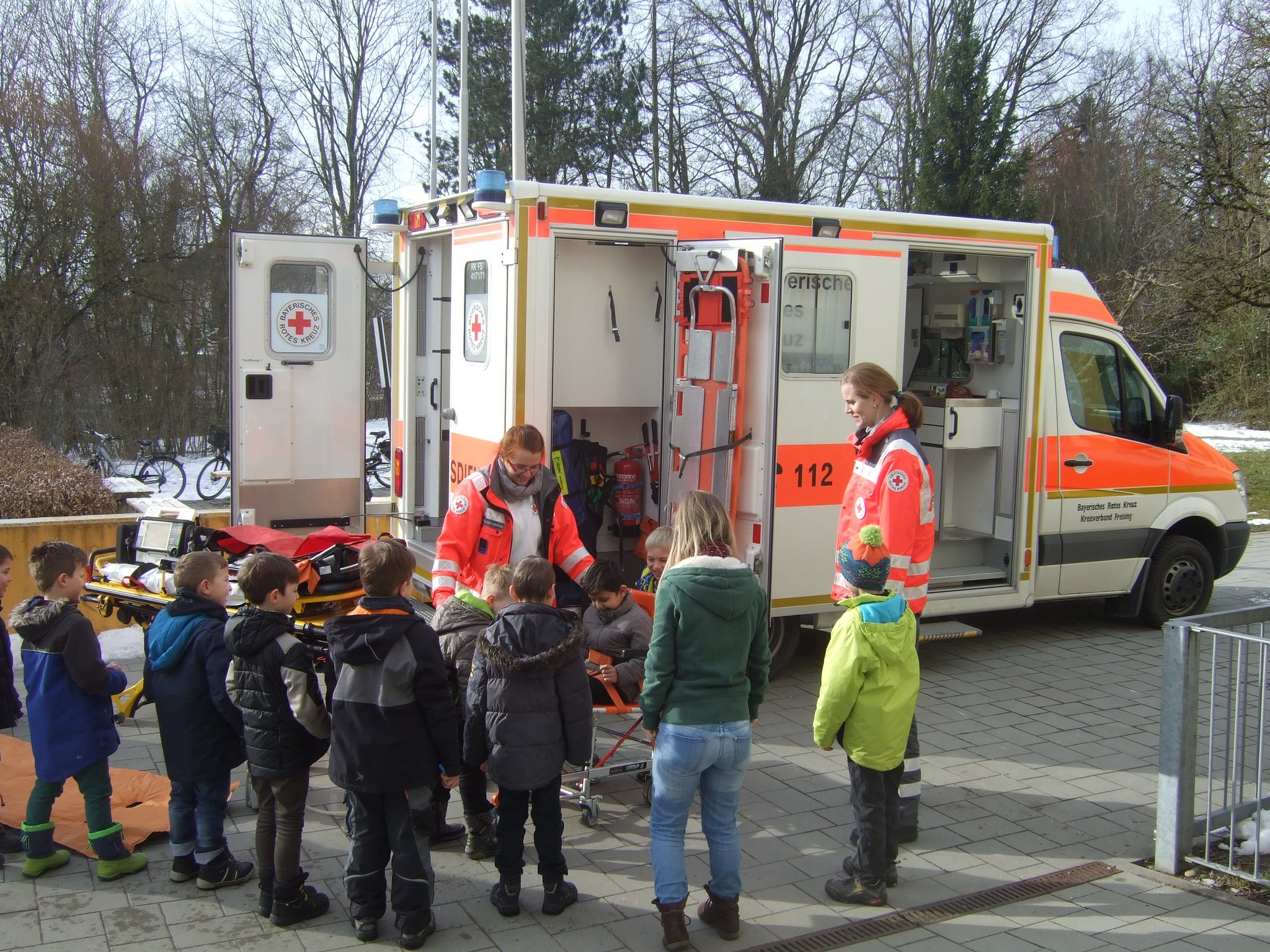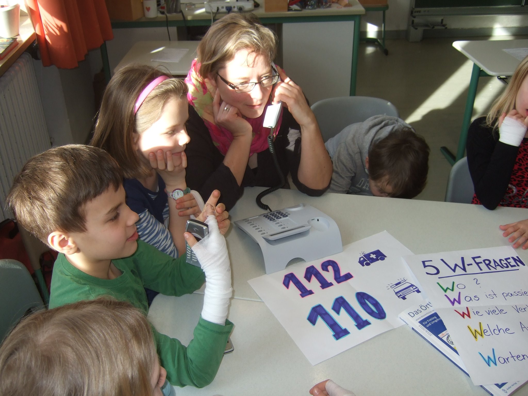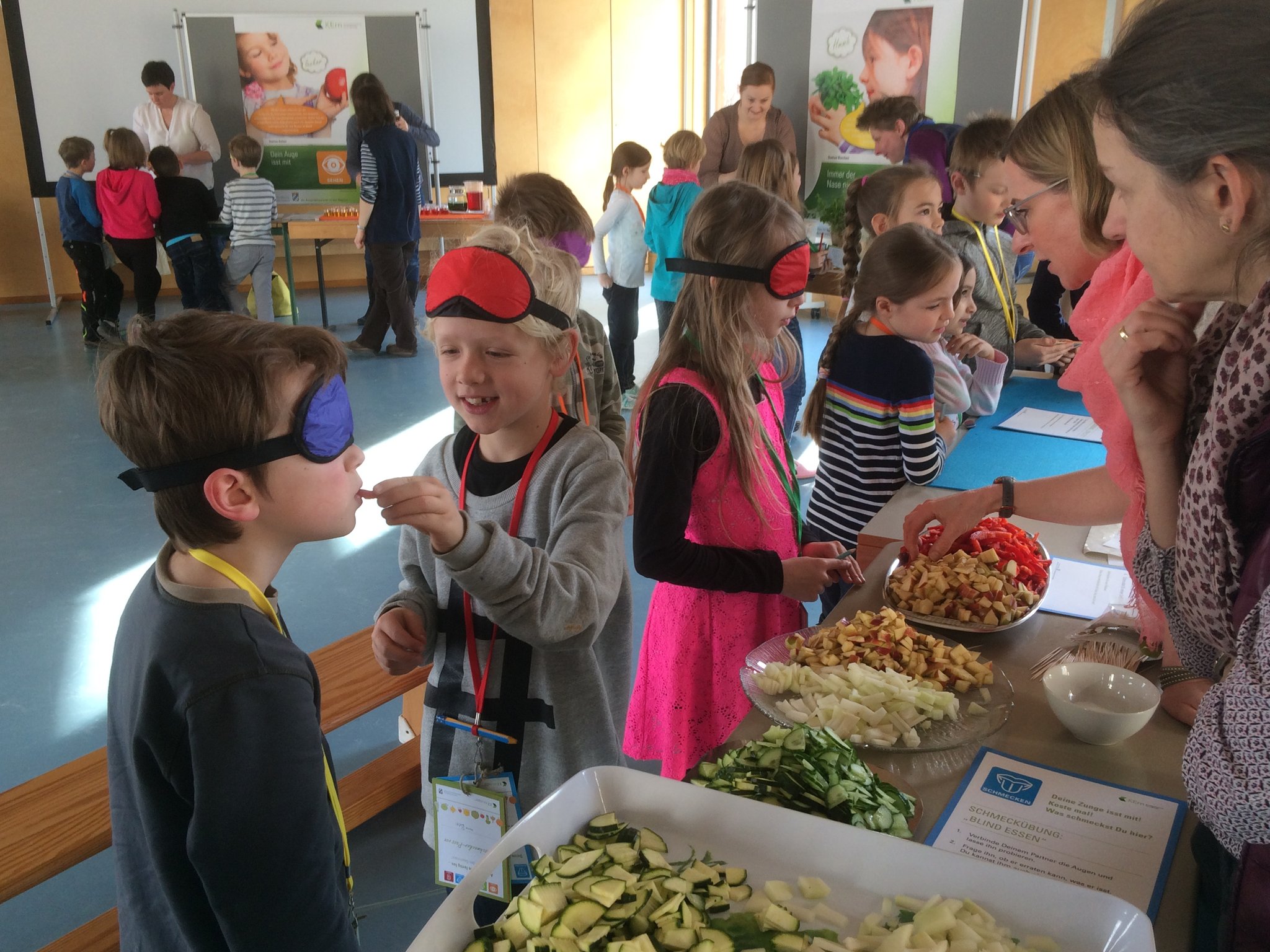 Rund um das Thema Gesundheit ging es am Aktionstag "Gesundheit" an unserer Schule. In allen Klassen beschäftigten sich die Schüler durch unterschiedlichste Aktionen mit den vielen verschiedenen Aspekten dieses Themas. Einige zusätzliche Angebote standen für alle Schüler unserer beiden Schulhäuser bereit. So parkte z.B. ein Rettungswagen des "Roten Kreuzes" vor dem Schulhaus. Die Mutter eines unserer Schulkinder, selbst Rettungssanitäterin, erklärte mit einer Kollegin geduldig allen (!) Klassen die Ausstattung des Wagens. Die Schüler durften sich auch im Rettungswagen umsehen und viele Fragen rund um einen Einsatz stellen. Bei einem Sinnesparcours konnten die Klassen an verschiedenen Stationen erproben, wie alle Sinne beim Essen und Trinken beteiligt sind, aber auch manchmal getäuscht werden können. Auch dort halfen viele Elterrn bei der Betreuung der Stationen. Das große Pausenbüfett - möglich gemacht durch viele Essensspenden der Eltern - wurde ebenfalls von Eltern und Lehrern perfekt vorbereitet, stärkte alle Schüler und Lehrer zur großen Pause und war obendrein auch noch richtig lecker und gesund!