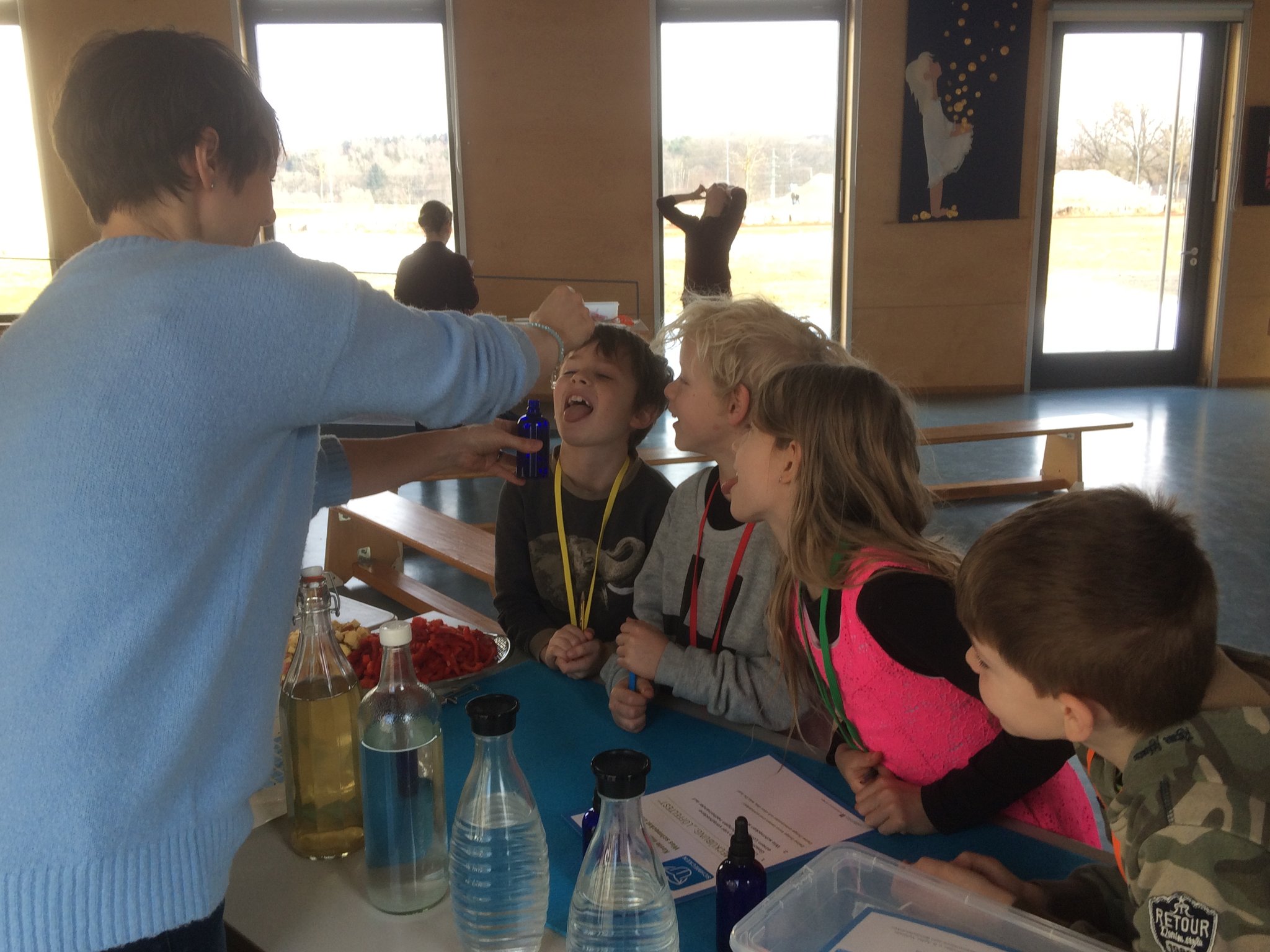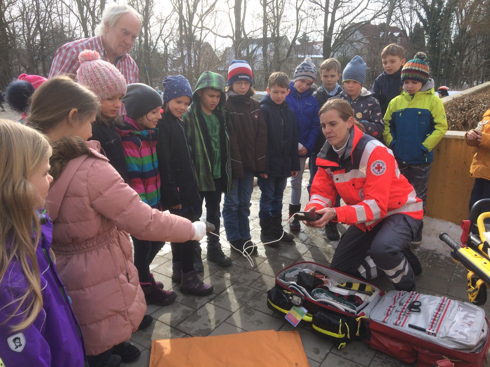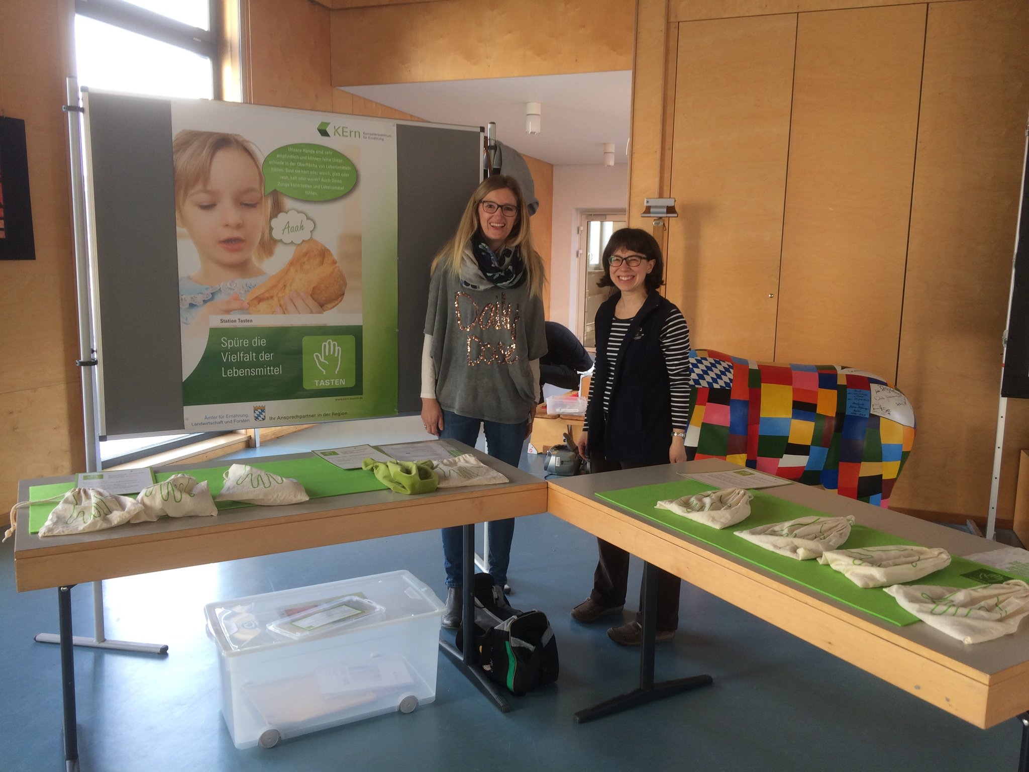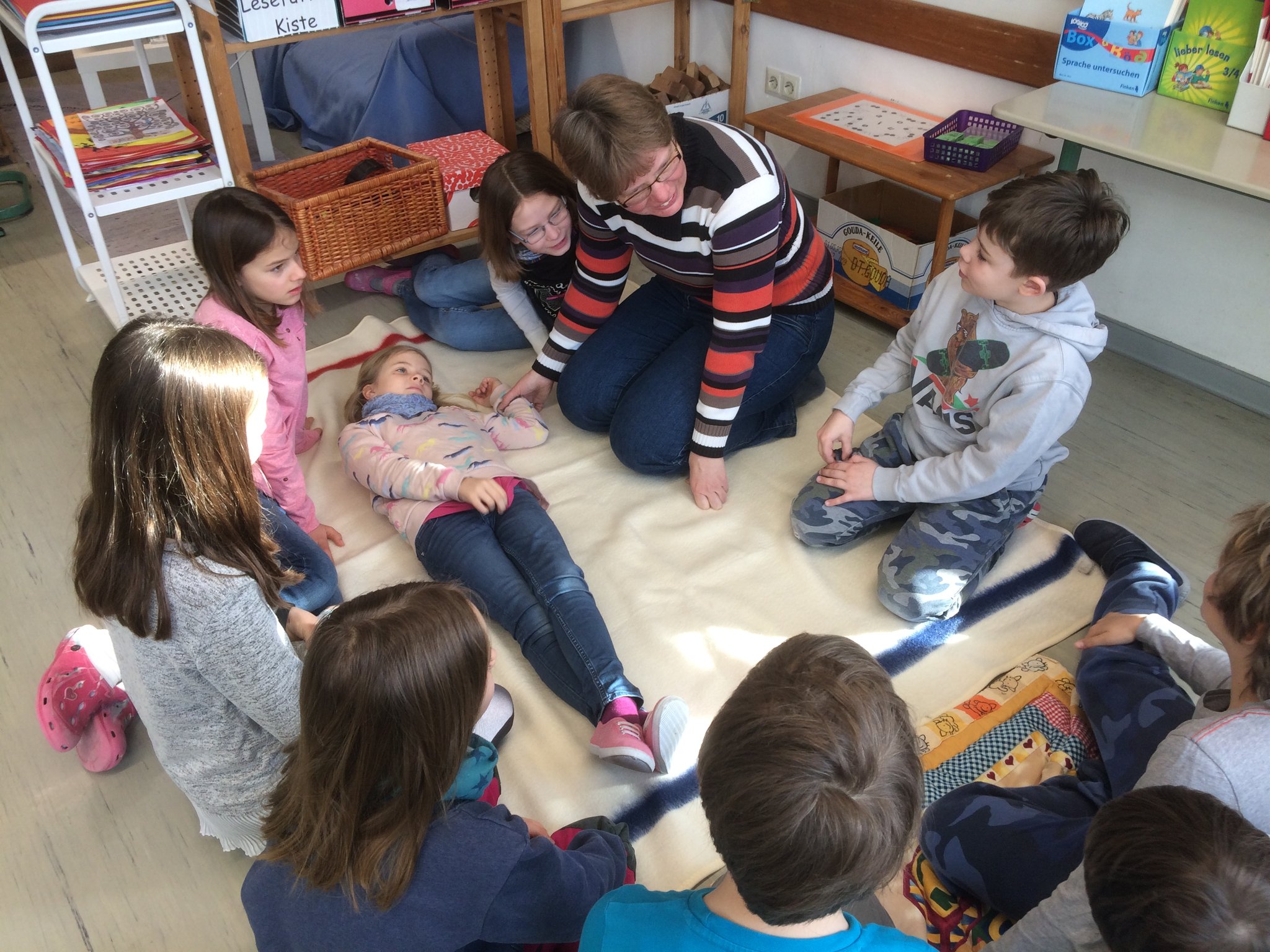 Rund um das Thema Gesundheit ging es am Aktionstag "Gesundheit" an unserer Schule. In allen Klassen beschäftigten sich die Schüler durch unterschiedlichste Aktionen mit den vielen verschiedenen Aspekten dieses Themas. Einige zusätzliche Angebote standen für alle Schüler unserer beiden Schulhäuser bereit. So parkte z.B. ein Rettungswagen des "Roten Kreuzes" vor dem Schulhaus. Die Mutter eines unserer Schulkinder, selbst Rettungssanitäterin, erklärte mit einer Kollegin geduldig allen (!) Klassen die Ausstattung des Wagens. Die Schüler durften sich auch im Rettungswagen umsehen und viele Fragen rund um einen Einsatz stellen. Bei einem Sinnesparcours konnten die Klassen an verschiedenen Stationen erproben, wie alle Sinne beim Essen und Trinken beteiligt sind, aber auch manchmal getäuscht werden können. Auch dort halfen viele Elterrn bei der Betreuung der Stationen. Das große Pausenbüfett - möglich gemacht durch viele Essensspenden der Eltern - wurde ebenfalls von Eltern und Lehrern perfekt vorbereitet, stärkte alle Schüler und Lehrer zur großen Pause und war obendrein auch noch richtig lecker und gesund!