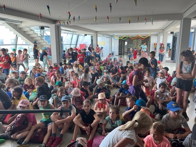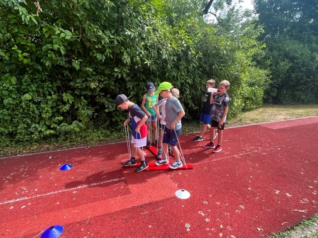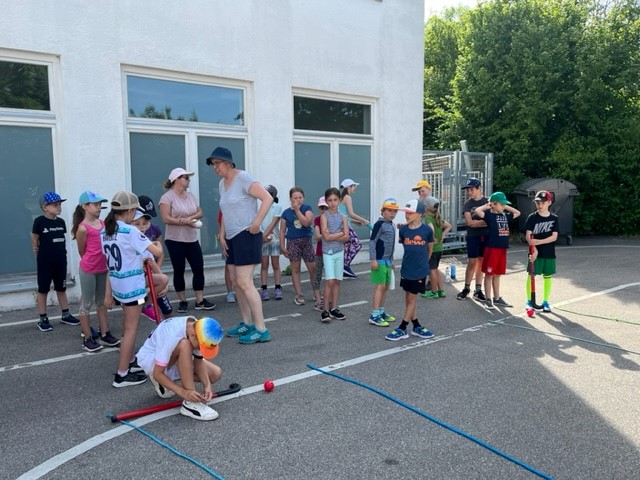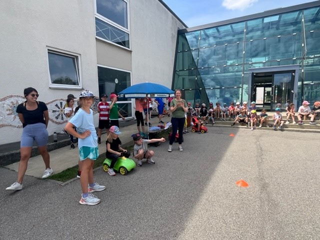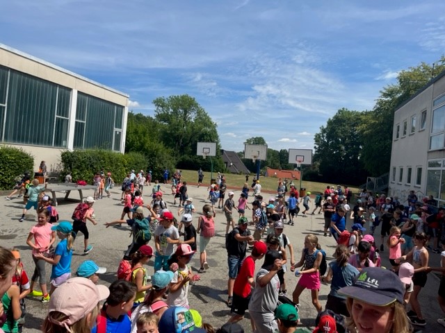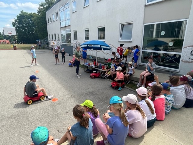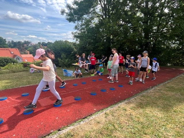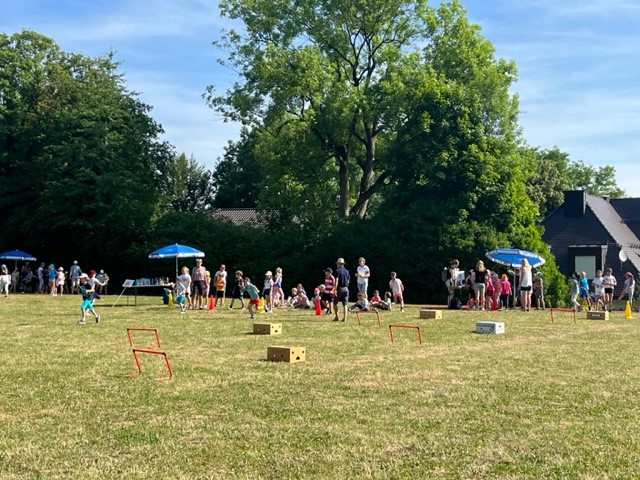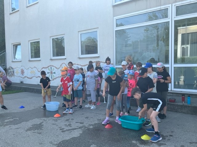 Nach langer Coronapause konnten wir in diesem Schuljahr endlich wieder unser Sport- und Spielefest durchführen. An den verschiedensten Spielstationen mussten die Kinder ihre Geschicklichkeit und Schnelligkeit unter Beweis stellen. Dabei waren die Gruppen bunt durchmischt mit Kindern aller vier Jahrgangsstufen. Eine Wasserschlacht brachte am Ende eines tollen Tages noch die perfekte Abkühlung.