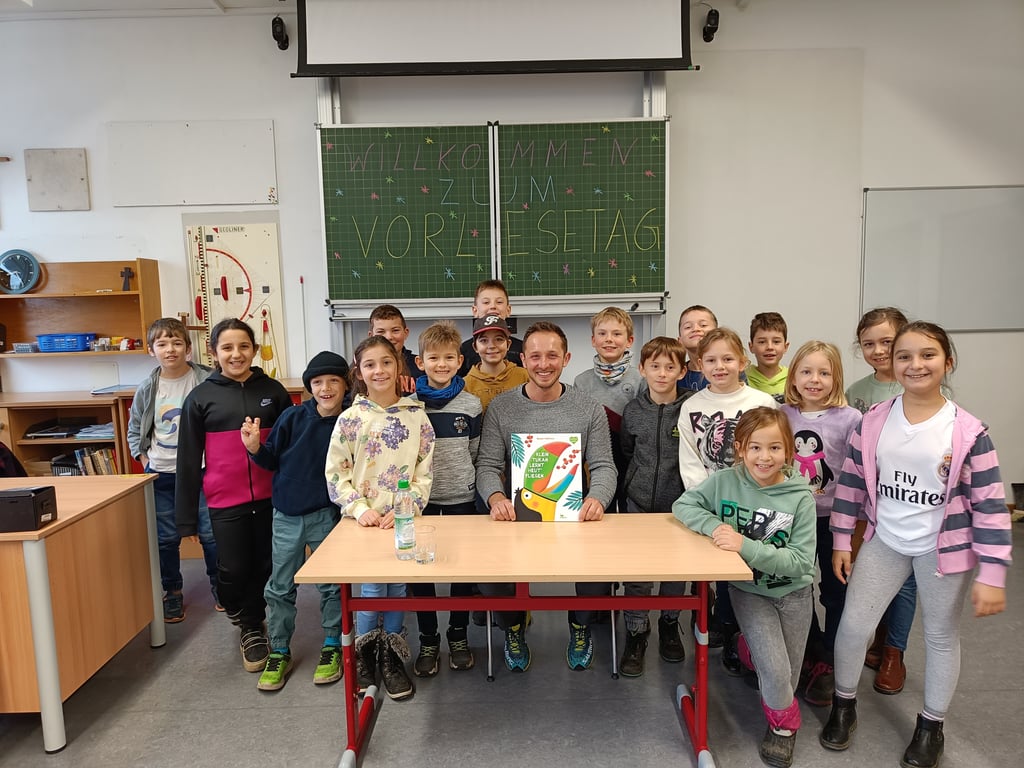 Dreizehn Gäste - für jede Klasse ein "Vorleser" - haben uns für diesen Tag gerne zugesagt und sich für die Kinder Zeit genommen. Weil an der Grundschule überwiegend Frauen unterrichten, haben wir heuer Herren eingeladen. Nach einem kurzen gemeinsamen Auftakt in der Aula war Vorlesezeit in allen Klassenzimmern! Für die Kinder und auch für unsere Gäste war es ein schöner Vormittag.