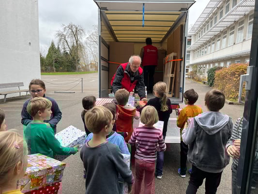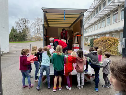 Die Aktion "Geschenk mit Herz" unterstützte unsere Schule wieder mit vielen Päckchen, die von unseren Schüler und deren Eltern liebevoll gepackt wurden. Beim Einladen der Päckchen in den Humedica Lastwagen halfen dann auch alle Schüler, die ein Päckchen mitgebracht hatten kräftig mit. Herzlichen Dank an alle Spender und Frau Engemann für diese schöne Aktion.