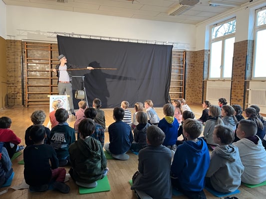 Eine gute Tradition hat an unserer Schule die Zusammenarbeit mit dem Kulturverein "Modern Studio". Auch in diesem Jahr besuchte uns das Kindertheater "Compagnie Nik München" mit einer modernen Interpretation des Märchens "Hans im Glück".