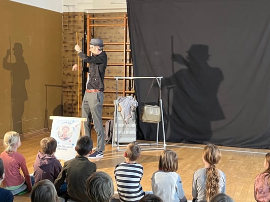 In vier Aufführungen - bei denen die Zuschauer ganz nah an der Bühne sitzen konnten - begeisterte der Schauspieler Dominik Bürki alias Hans Göttmann sein junges Publikum.