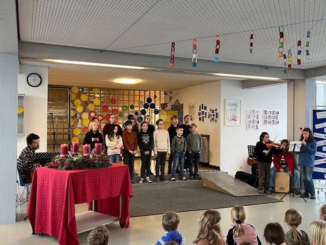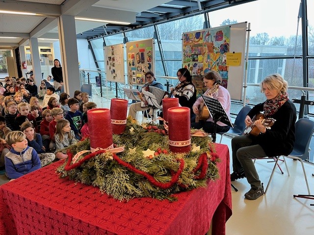 Auch in diesem Schuljahr bekamen wir gleich zu unserer ersten gemeinsamen Adventfeier in der Aula hohen Besuch vom Nikolaus. Er erzählte uns wie Jori, ein kleiner Junge aus Island das Weihnachtsfest verbringt. Nachdem ihm die Klasse 2b noch ein Gedicht vorgetragen und der Schulchor ein Lied vorgesungen hatten, schenkte der Nikolaus jeder Klasse einen großen Sack mit vielen Leckereien.